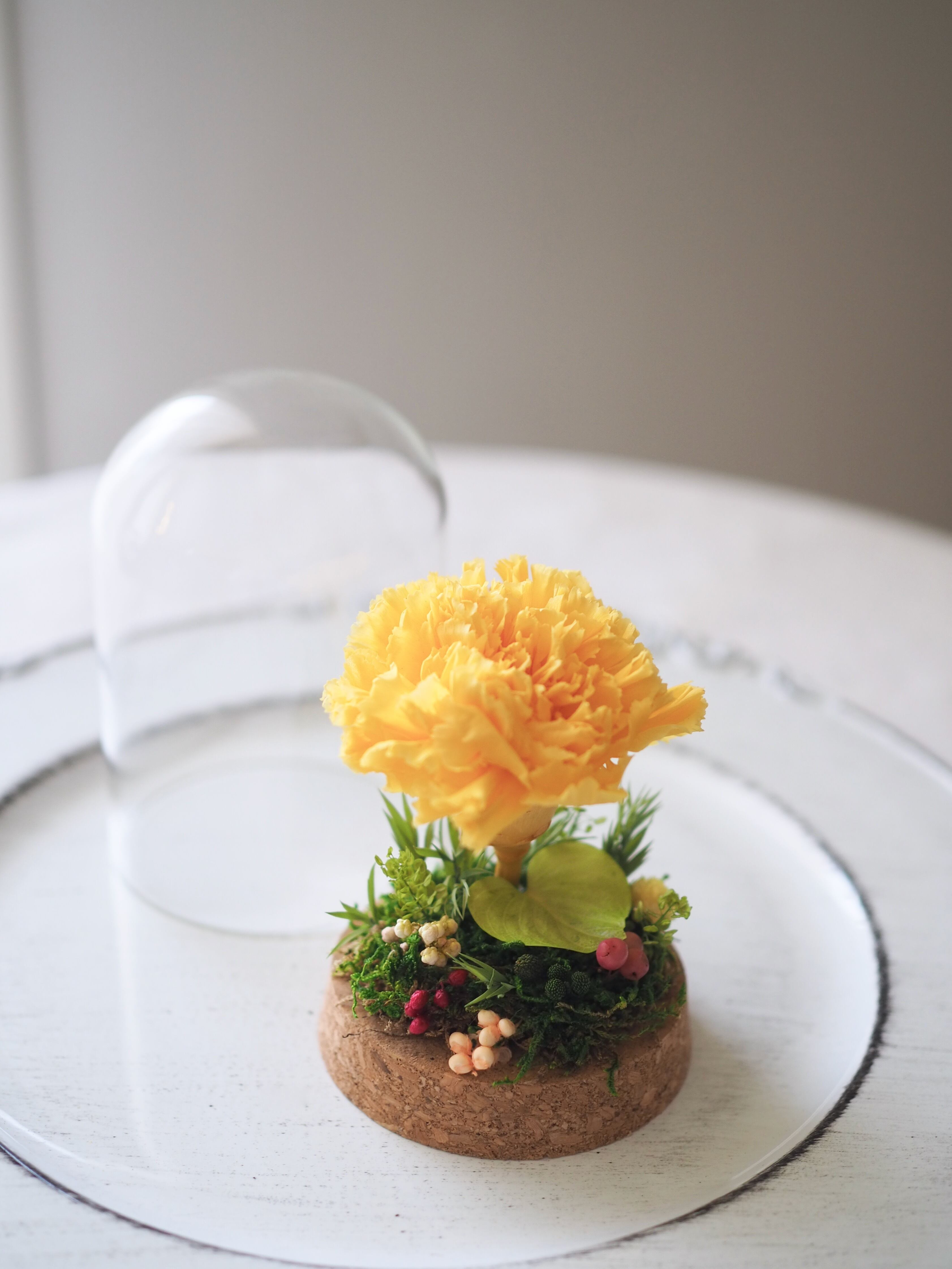 【母の日2025】ガラスドームのアレンジメント(イエロー/苔)