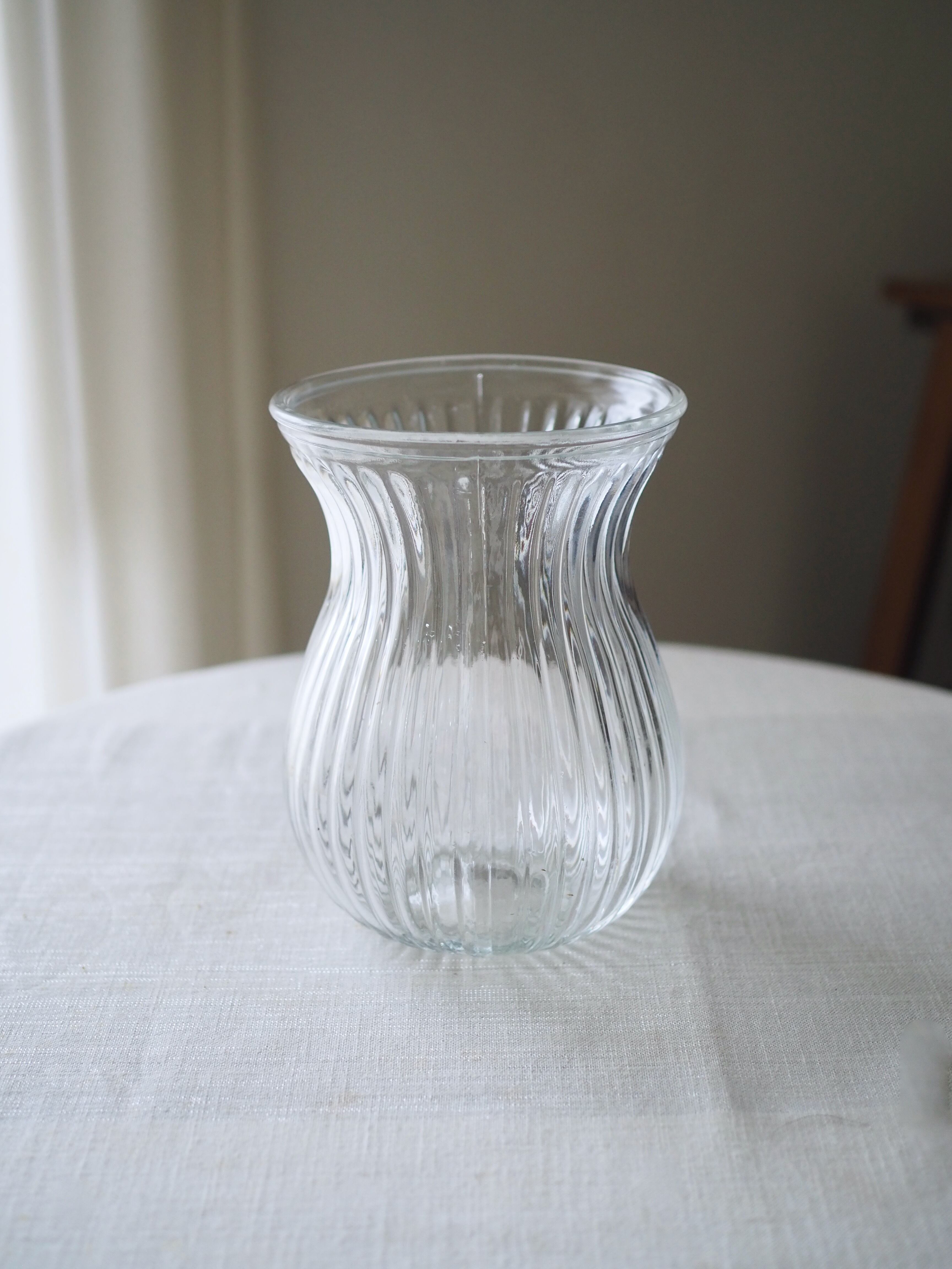 シンプルなガラスベースは、少量のお花もたっぷりとしたブーケも飾りやすく重宝するオススメのタイプです。