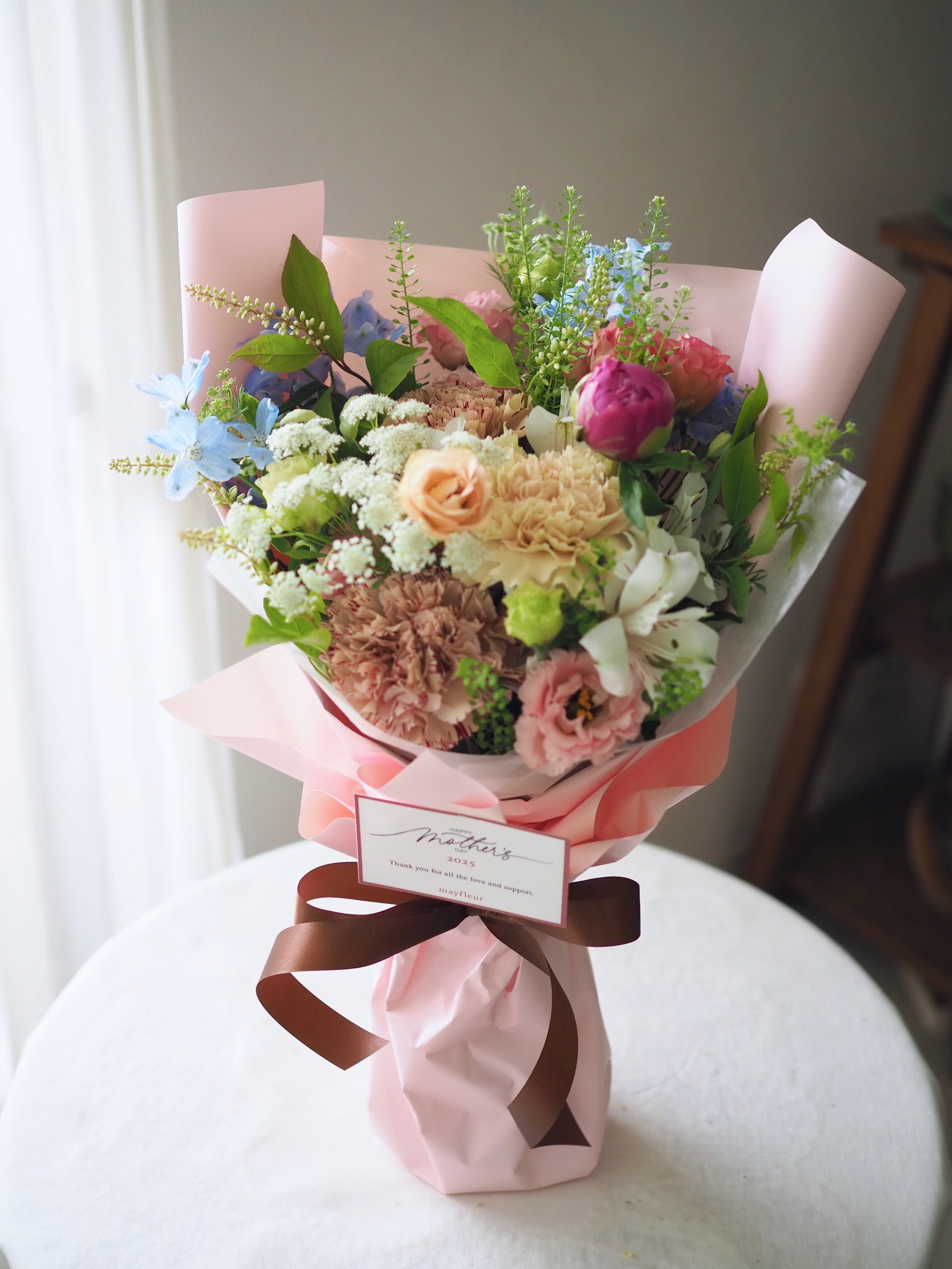 これまでの母の日にお作りした花束の画像をいくつか載せておりますのでご参考にしてください。