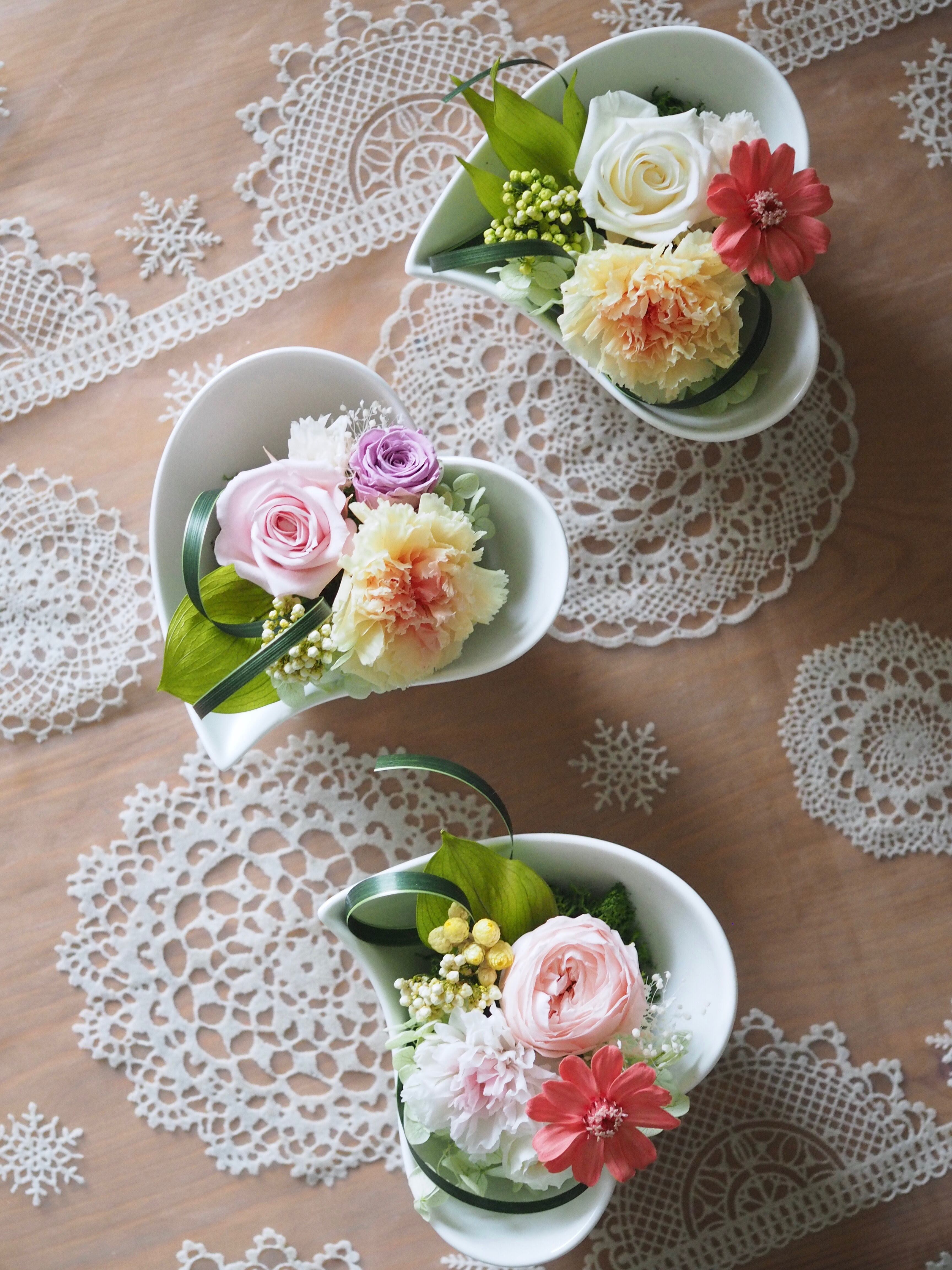 ひとつでももちろん可愛く、二つ、三つと組み合わせてディスプレイを楽しまれるのもまた素敵なアレンジメントです。